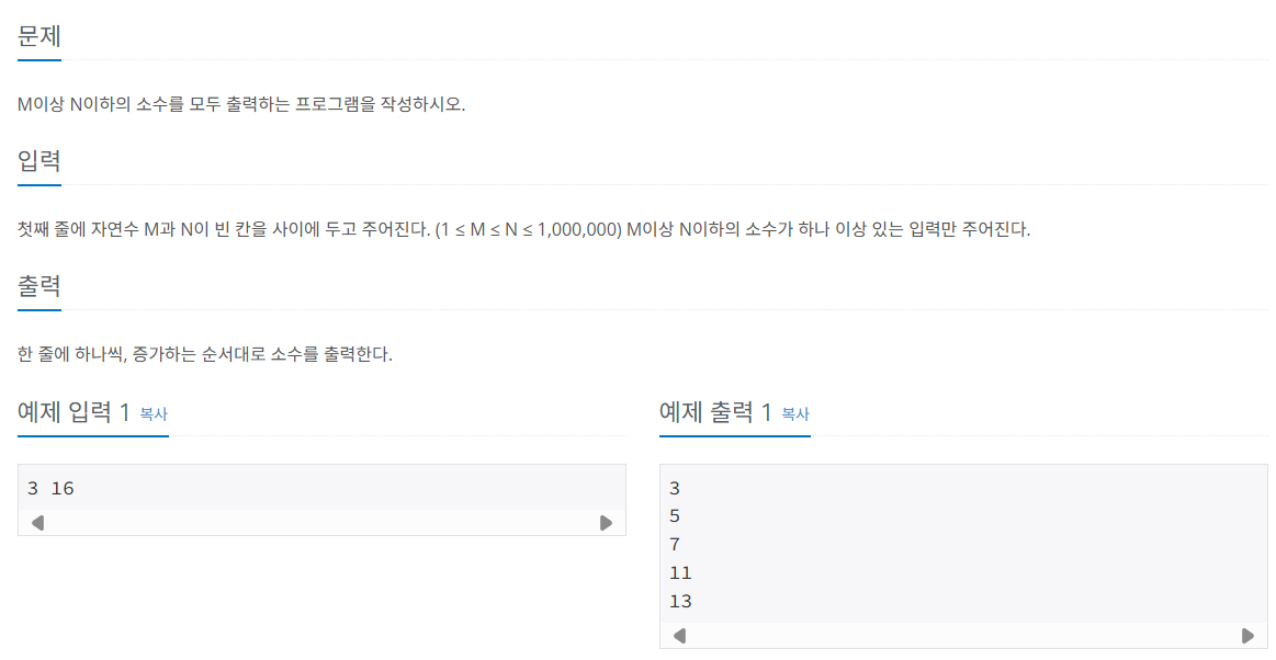 (1 ≤ M ≤ N ≤ 1,000,000) 범위가 이래버려서 그런듯..