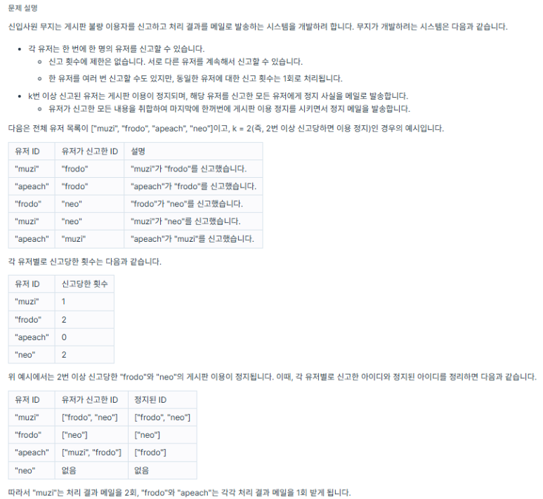 코딩테스트 연습 > 2022 KAKAO BLIND RECRUITMENT > 신고 결과 받기