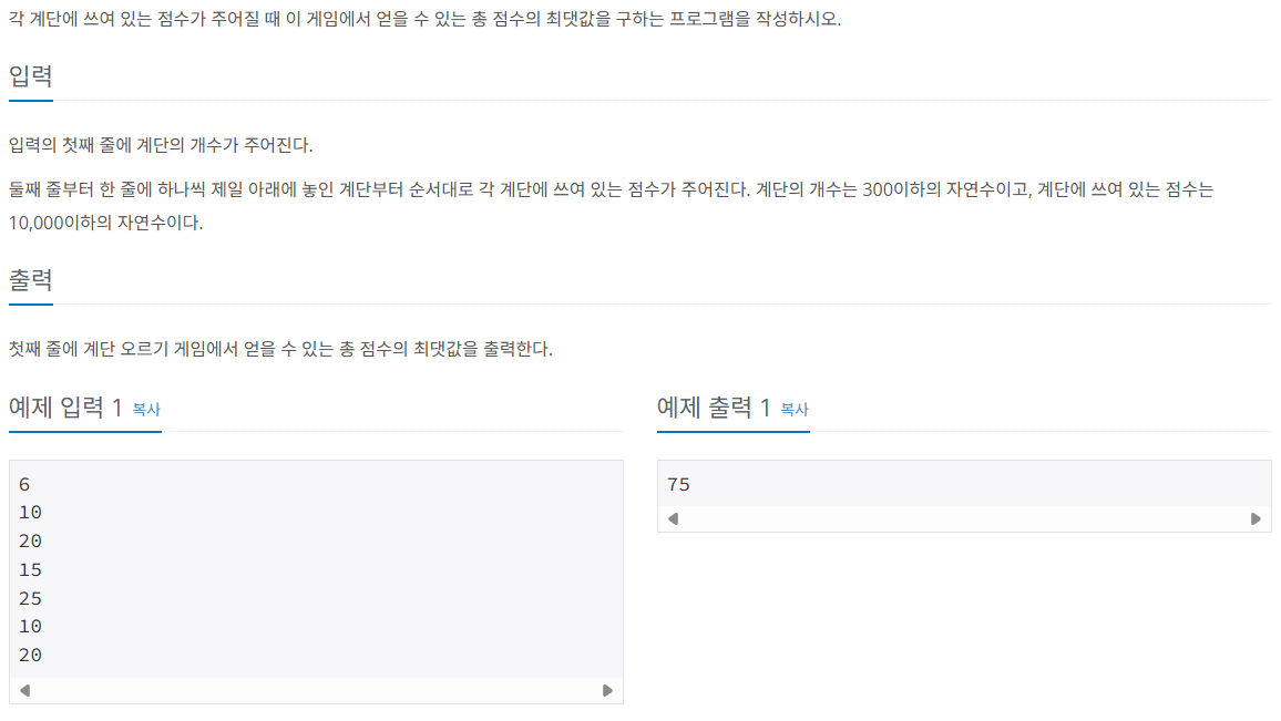 그래서 dp로 구현하려는데 연달아서 3칸 못올라가는거 때문에 고민...