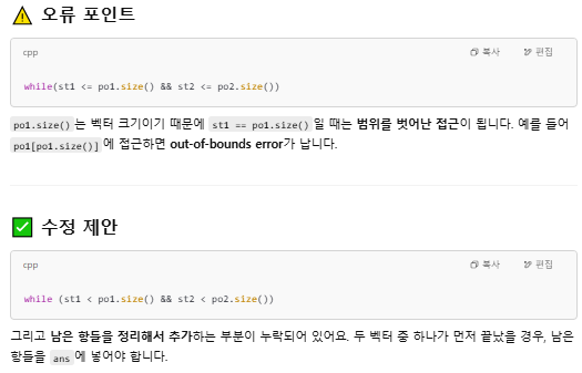 // 다항식 둘중 하나의 끝까지 갈때까지 반복하기