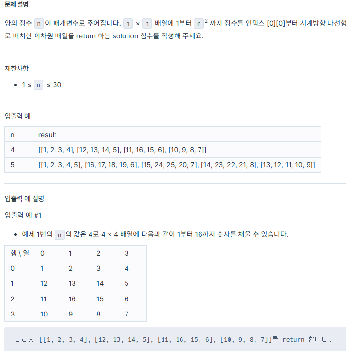 int dir = 0; // 방향 설정 0: 오른쪽, 1: 아래, 2: 왼쪽, 3: 위