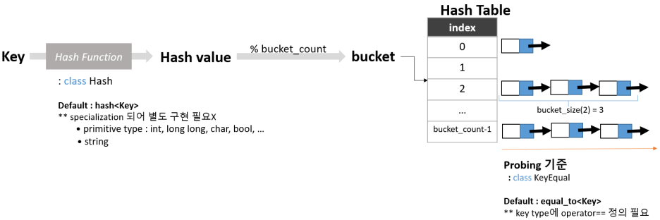 - KeyEqual : equal_to operator (==) overloading