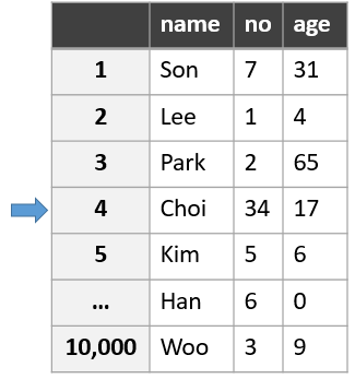 | 가장 기본적인 순차탐색. 데이터의 수, 검색횟수가 적은 경우 사용 |