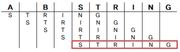- 문자열이 찾고자 하는 패턴을 포함하고 있는지 문자열의 왼쪽에서부터 한칸씩 이동하며 패턴 비교